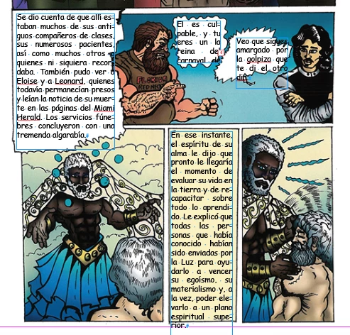 I'm translating a comic book from english to spanish, and I have to replace the existing text in the ballons with a newone. Does anyone know how to automatically fill the space with text, without creating a shape? Below you'll find images to show it better. The first one is the original version, the second is after been cleaned in Photoshop, and the third one is the spanish translation without formatting, inside the ballon. I appretiate in advance any idea to do this faster than the traditional method.
