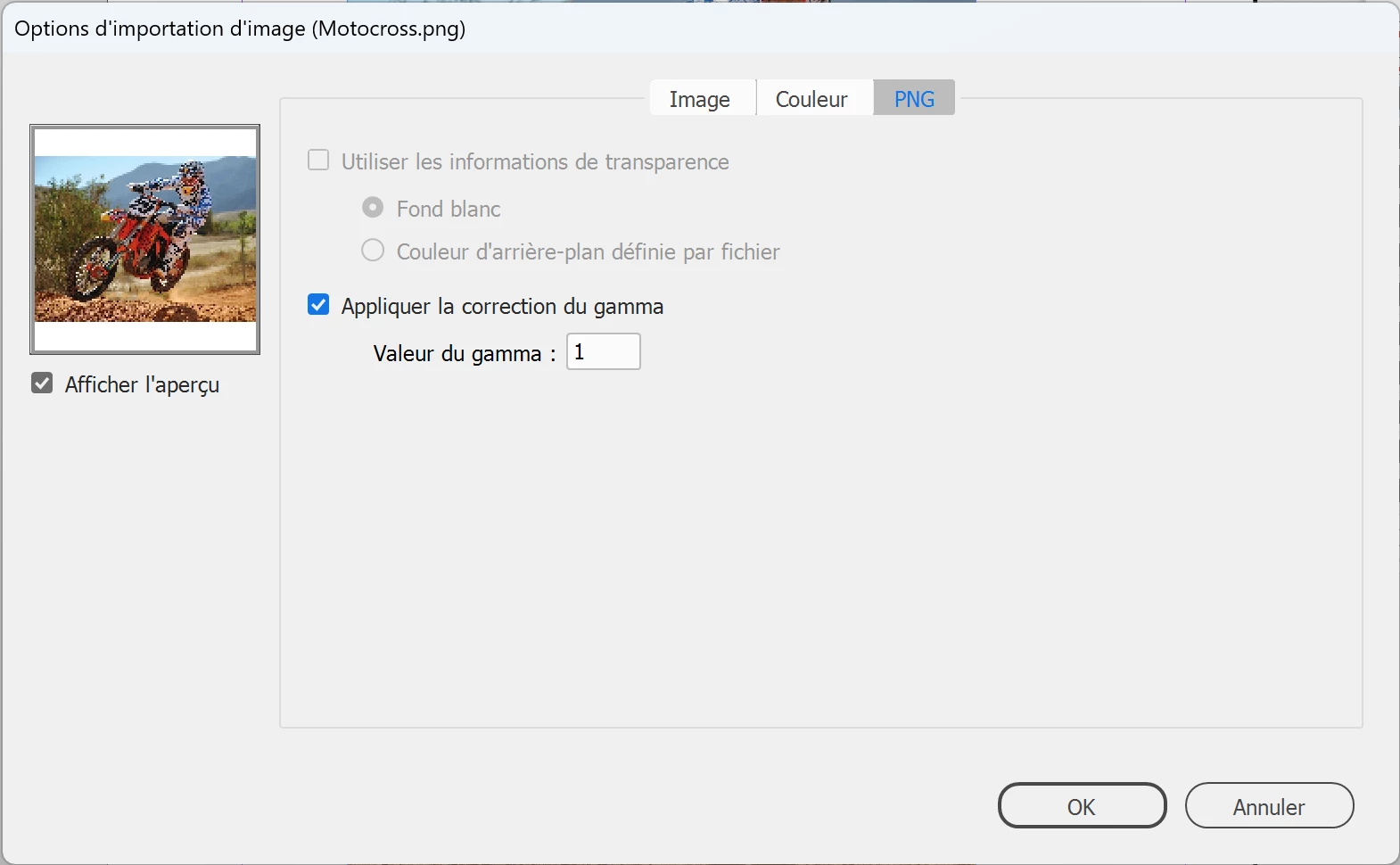 PNG: Changing gamma value on Import does nothing?