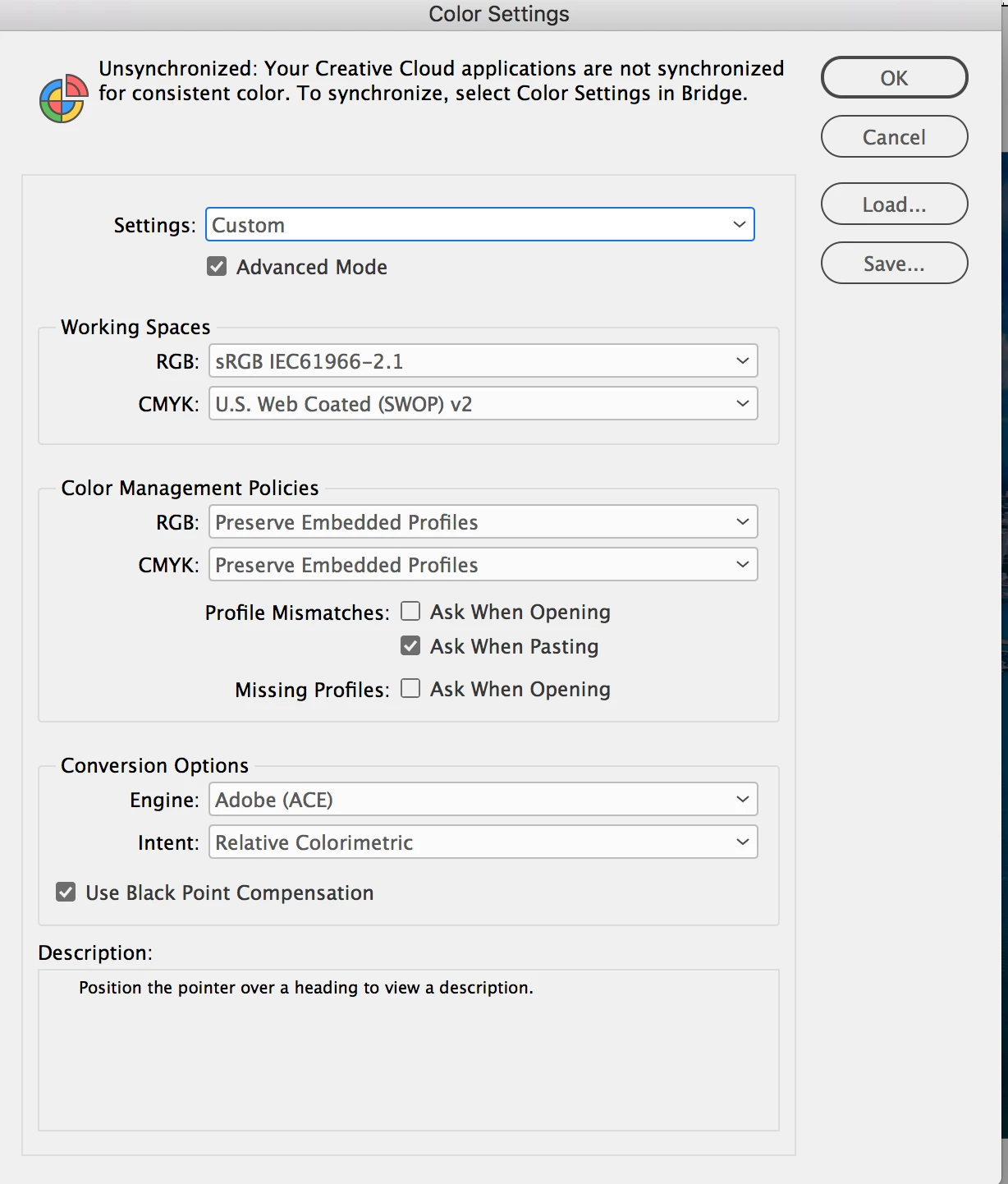 Here's a photo of the doc before and after pasting and a screenshot of my color settings for both files.