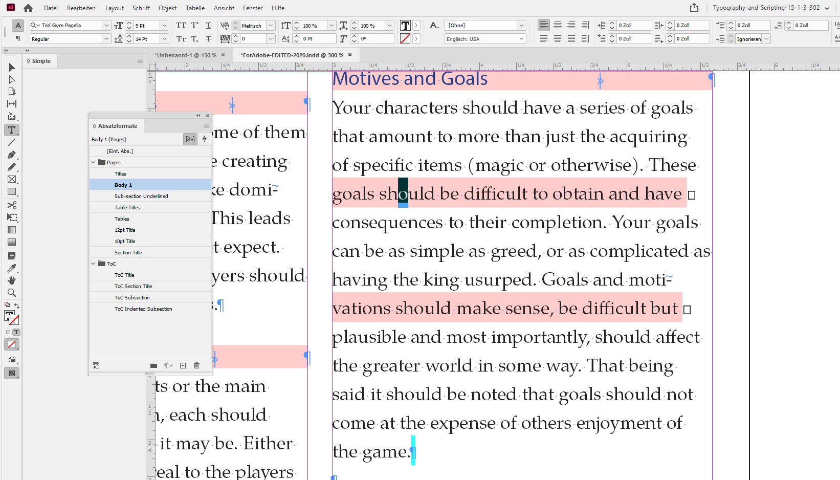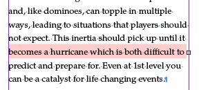 I'm trying to cut and paste from my main document (in OpenOffice) to InDesign. I'd say that 98% of the text is fine but occasionally I get random sections of text highlighted in pink with tiny squares next to them (see attached pic below). I don't believe this to be a missing font issue because I will have an entire paragraph with this particular font be perfectly fine. While another has roughly 3/4 of the text normal and the other 1/4 highlighted in this way. I can't simply change the font because I need that font I have for the body text. So far rewording the text has worked (to an extent) but after a certain point it will randomly highlight again. Any help would be greatly appreciated. Thanks