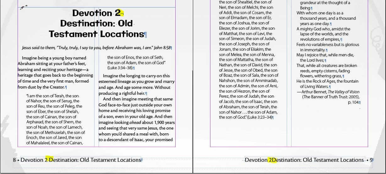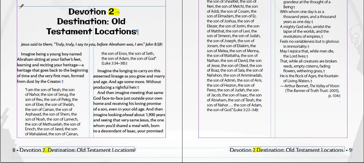 Has anyone else seen this error using the Running Header text variable? I have used a line break in a several-line heading in order to properly distribute the text. In the footer, that line break is counted as a space in the first instance of the running header, but on subsequent pages it isn't counted as a space. So if I put a space before the line break in the heading, I end up with two spaces on the first instance and one space on the rest, but if I remove the extra space, I end up with one space on the first instance and no space on the rest. I have to have the line break. I now have this problem in multiple books where I've used a forced line break in headings, and I believe the forced line break is the source of the error. If I remove it, I can get the running headers to space correctly. Weirdly enough, I have been able to export some of the offending documents to idml and fix the error, but this does not work on all of them. Anyone have any ideas why this is an issue and what I can do to fix it?