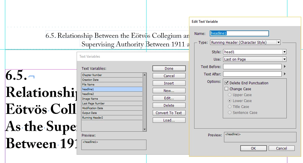 Possible Running Header Text Variable error