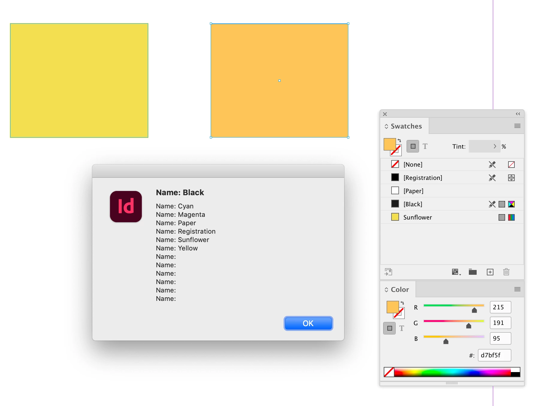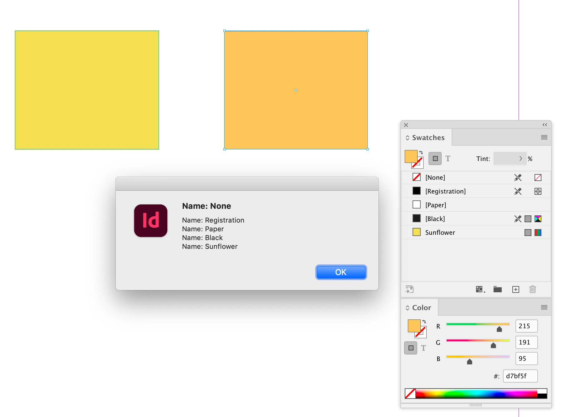var message = "RGB or spot colors swatches are present:\n";