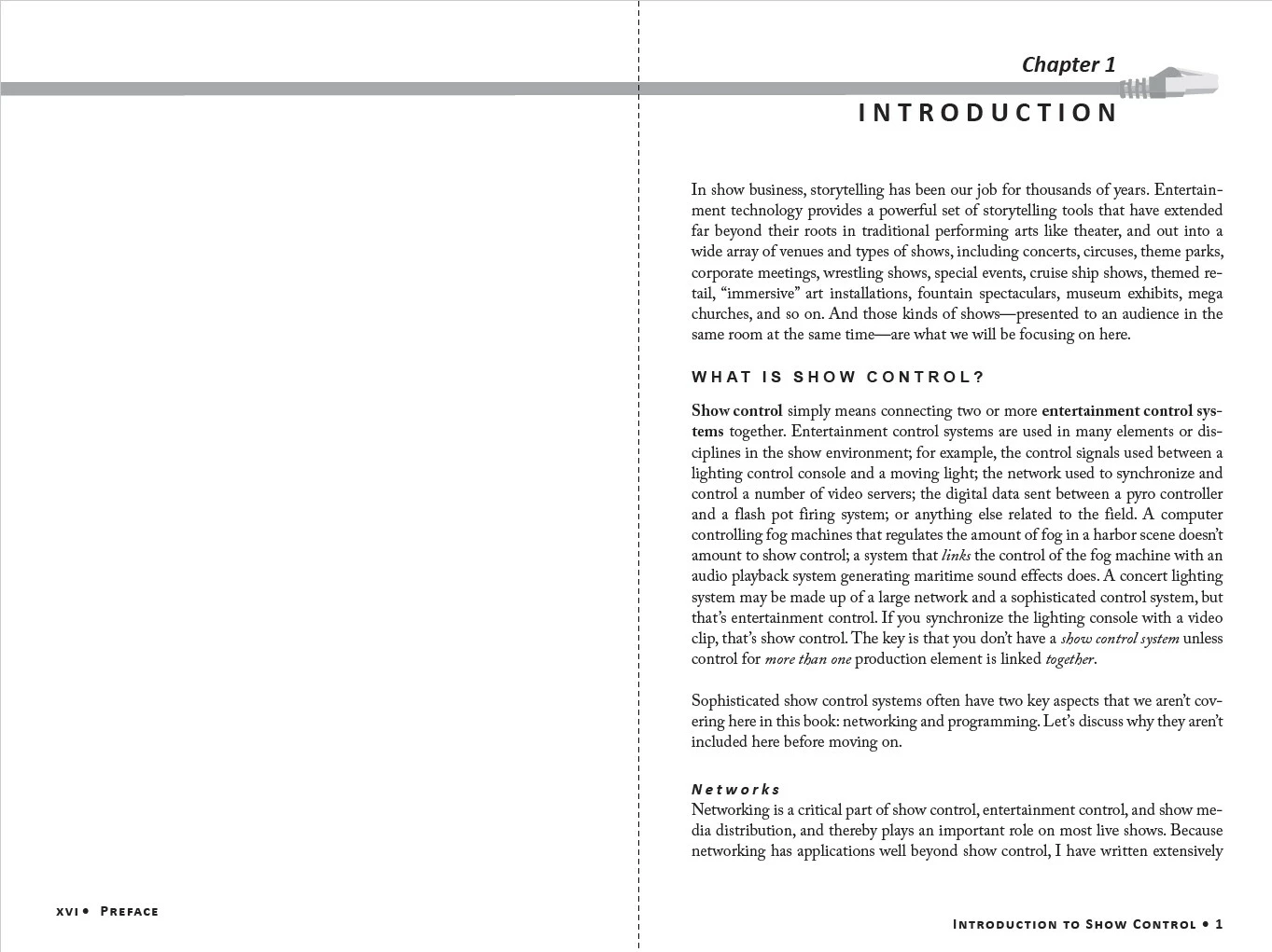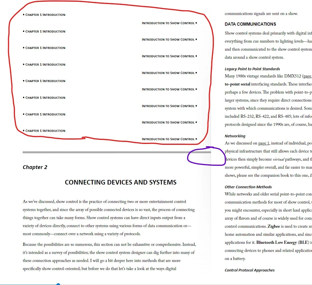 You can see the "Introduction to Show Control" at the bottom of page one. In the EPub (as uploaded to Google books) all the footers stack up at the end of the chapter: