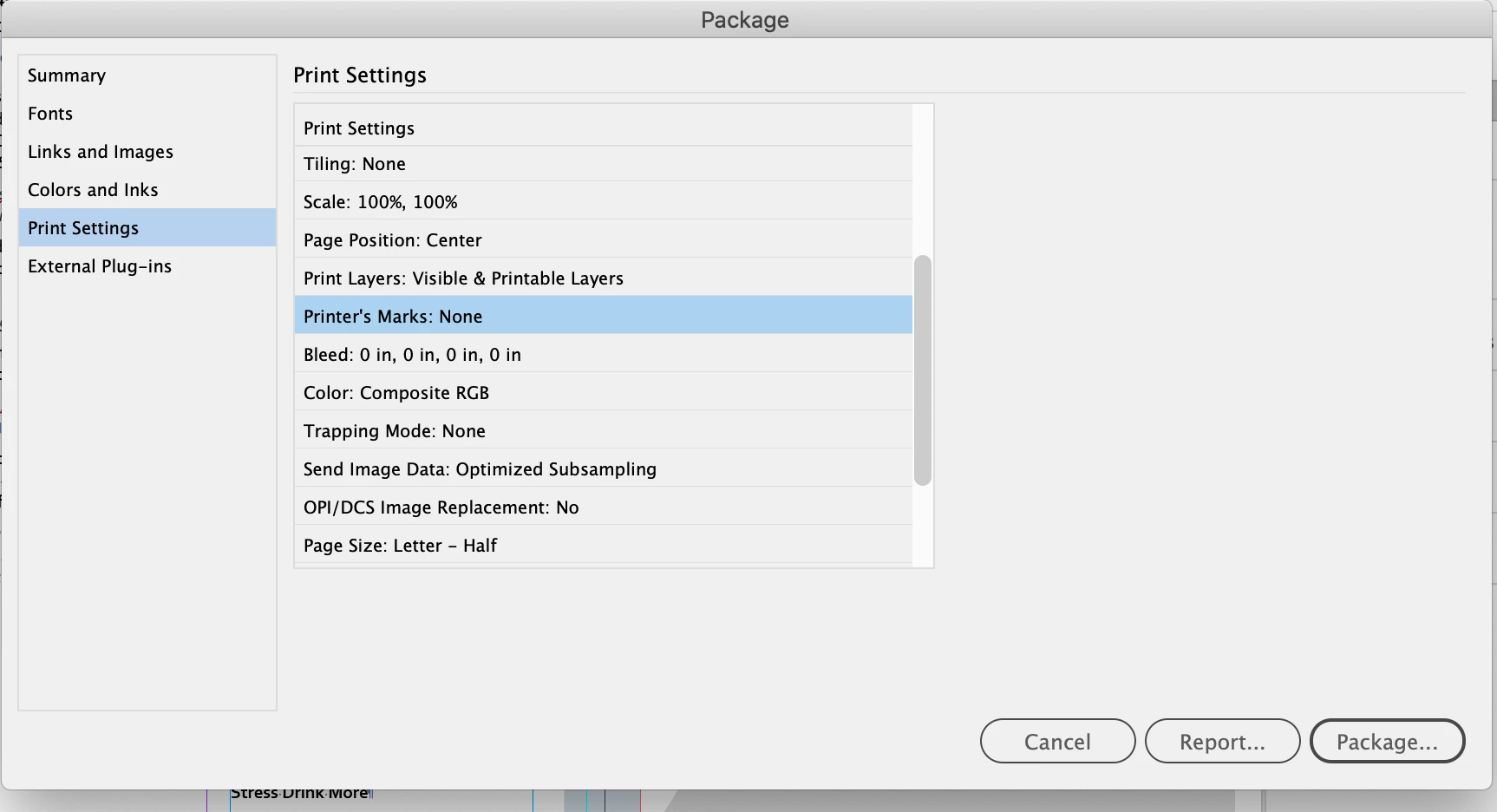 I feel like this should be easier than it seems to me. But when I try to package a file to send to a printer it doesn't give me the option to add printer's makers, and I do have bleeds and crops in the document. It just shows me "Printer's Marks: No"