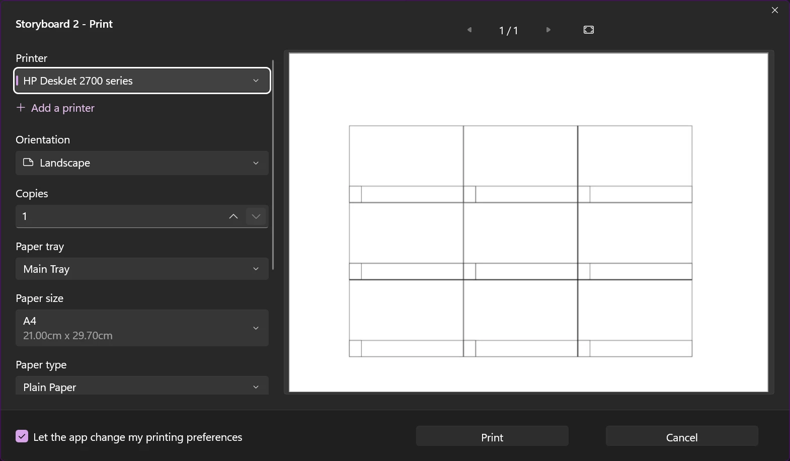 I'm in the UK so UK sizes. I designed a simple storyboard template in InDesign and exported as JPEG as not getting anywhere printing within ID. For some reason when I preview in the print window it's all squished up. What's going on? I tried to match the ID file with my printer. I'm trying to make maximum use of the space. I'm only semi-experienced with InDesign. ID document set to 297x210mm to match 'paper size' in print GUI.