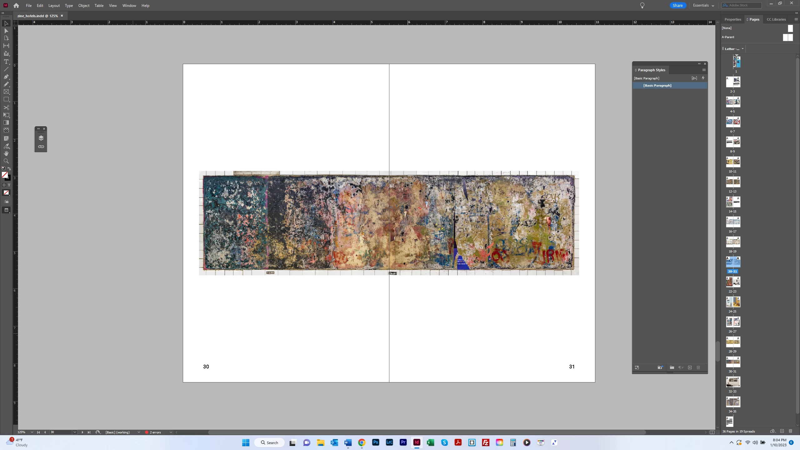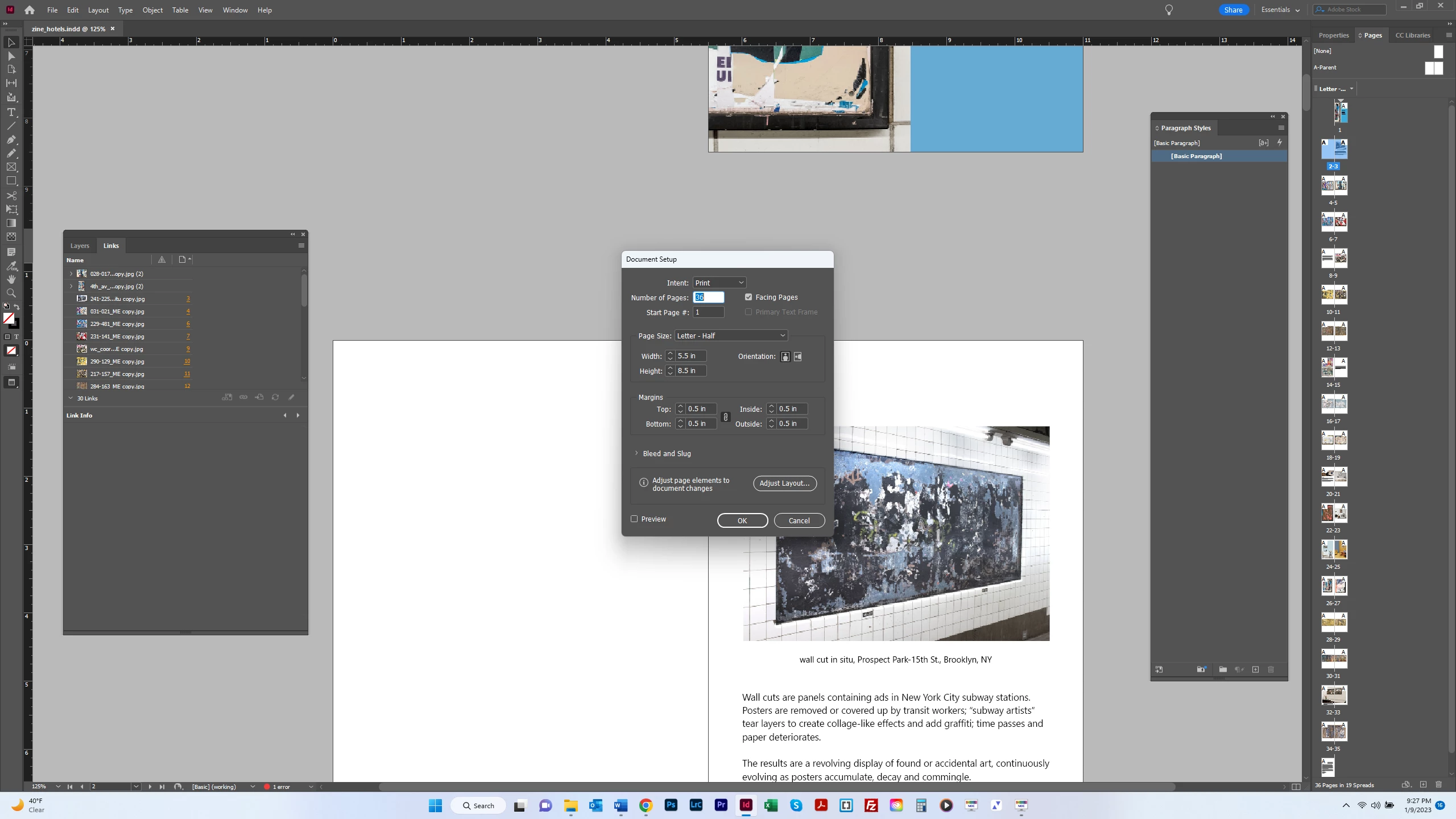 Thank you!  I exported to PDF as advised and chose the Print>Booklet option.  The only thing I had not thought through was having some pages as "spreads," with a wide image printed across both sides of the booklet (see screenshot).  Although I have not actually printed yet, I'm guessing this may not look smooth as the 2 halves are not on the same piece of paper.  I guess this is not done in zines much or is there some workaround which permits a seamless image?  Thanks again, James, Bob, Luke, and Adobe!