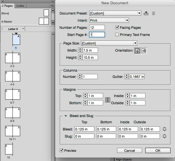 I'm new to indesign so I'm sorry if this won't make sense. I am printing a book to be hand-bound in perfect binding. Page size is 7.5x10.5, and I am using standard letter size paper, so there's no folding.