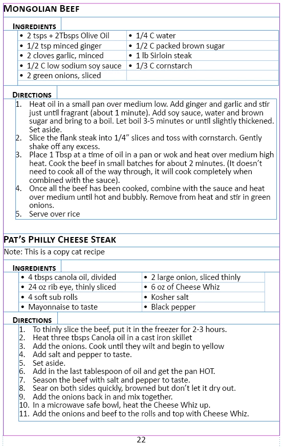 p.s This whole cook book thing has turned into a monster. I originally built two "family" cookbooks, one for my wifes side of the family, and one for my side.  Both sides now want and updated cook book. They want me to add a huge number of recipies, change the format to 5 x 8 so they can print it out in cardstock, and make an astronomical number of edits to the existing recipes.  I have told them not to expect an updated cookbook anytime in the near future.