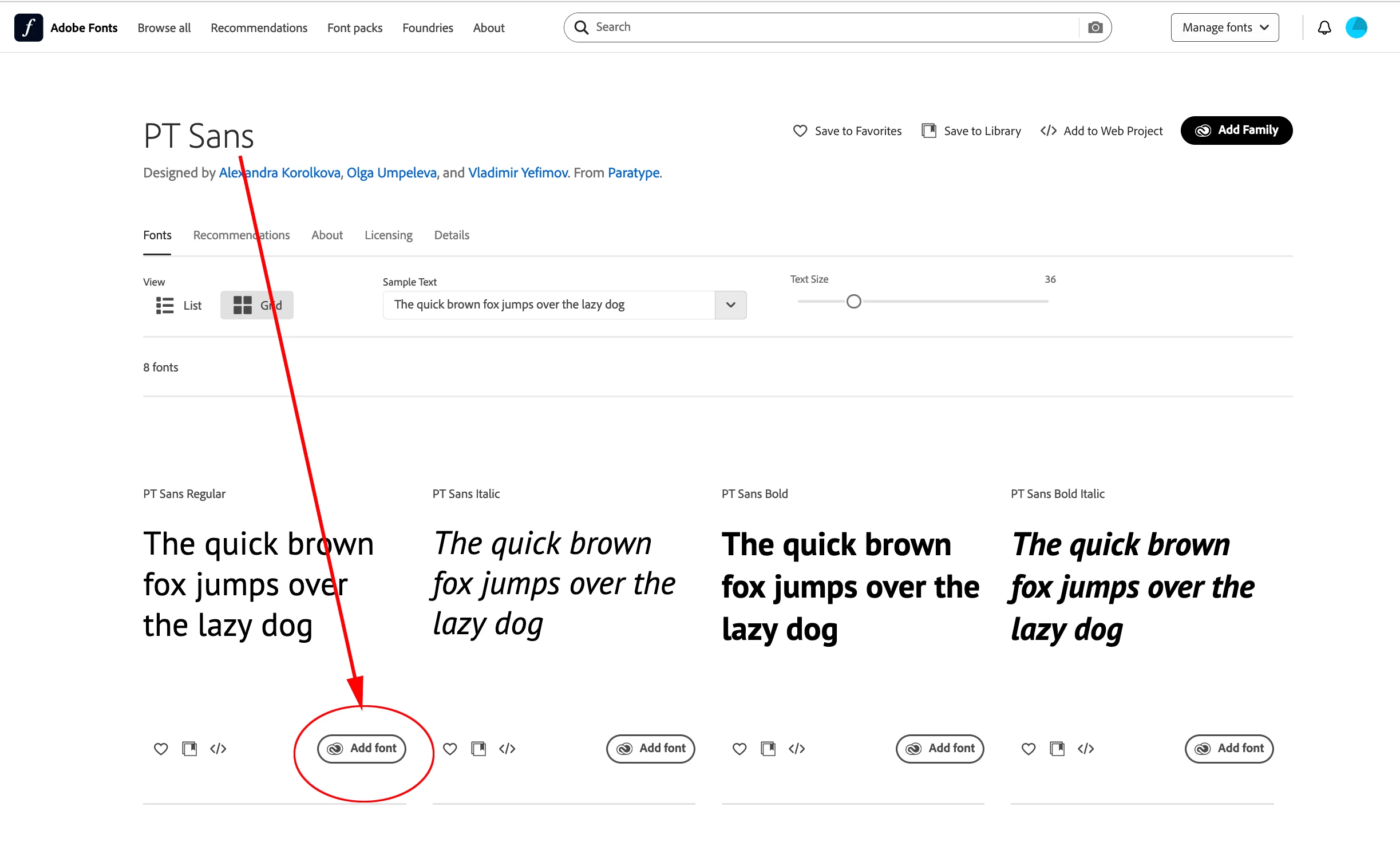 If you want to use the Adobe Type version, try uninstalling all the Google versions of PT Sans installed in your local OS so there is no conflict and activate via the Add Font button at Adobe Fonts