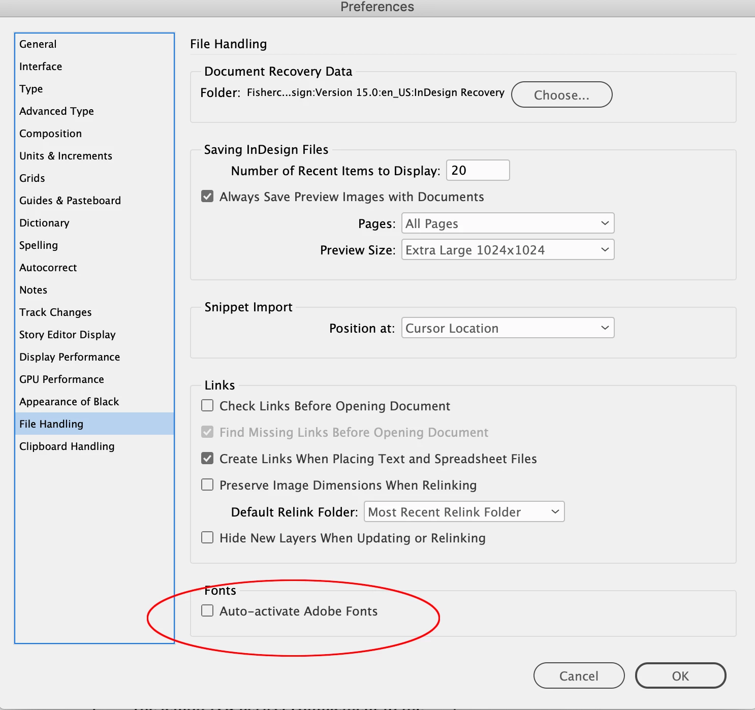 Problem with automatic font activation in InDesign.