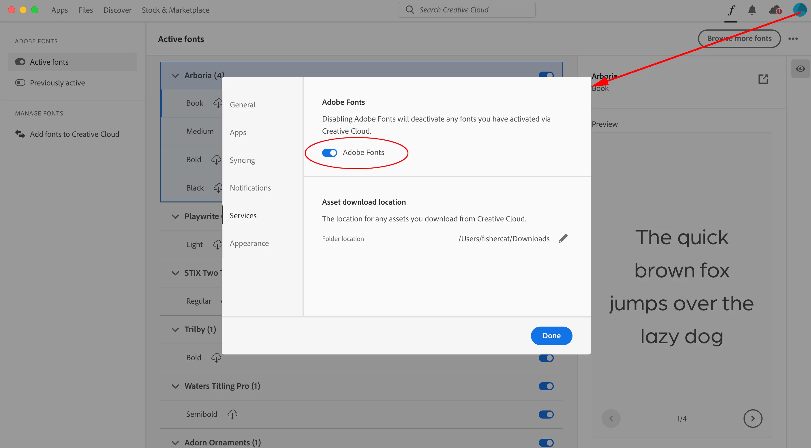 After doing this, restart your system and launch InDesign again with Adobe Fonts disabled in both InDesign and the Creative Cloud app.