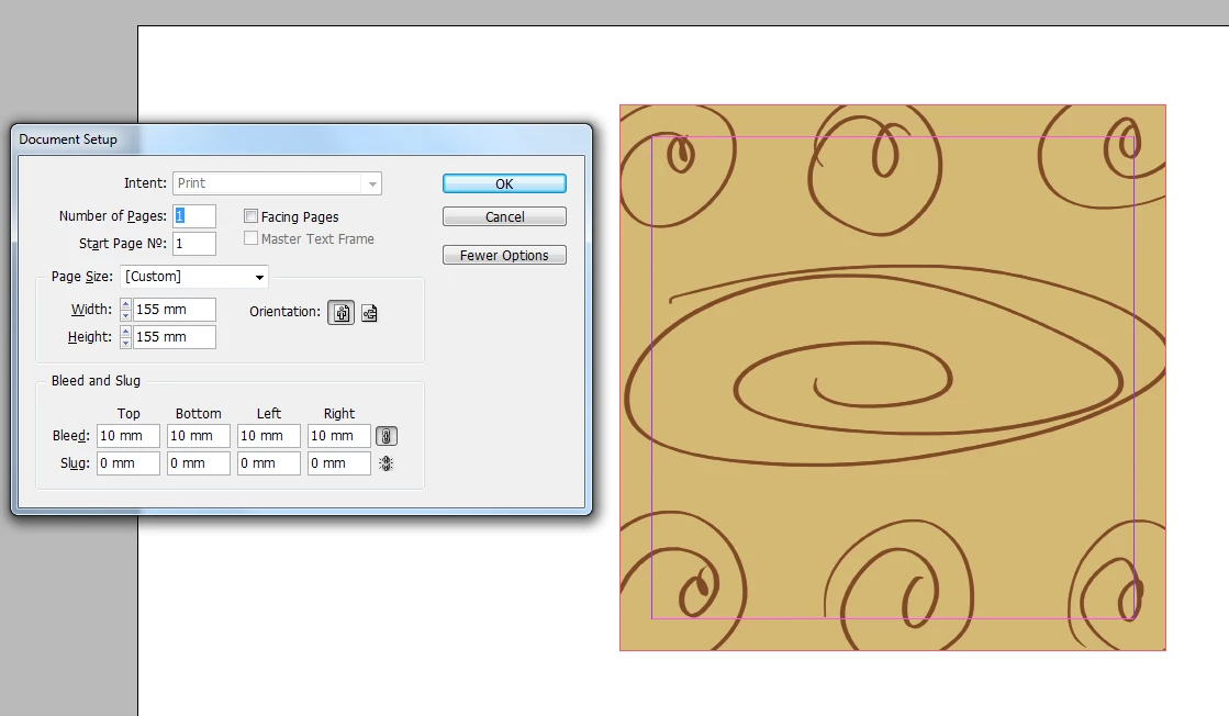 When I export my document, my 10mm bleed becomes this white frame. I have not found a solution on how to get rid of it. I've tried a bunch of different things, and now I'm hoping some nice person here can help me out.