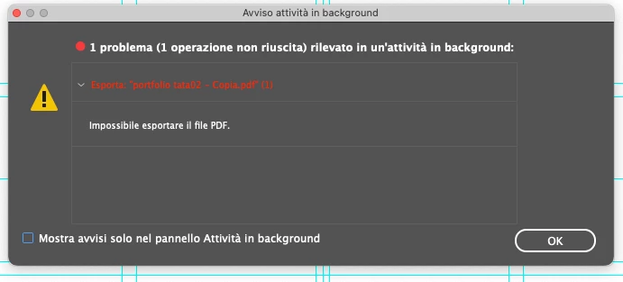 Buongiorno!! dopo aver eseguito l'aggiornomanto dei mio iMac, InDesign non mi permette più di esportare in pdf segnalando il seguente errore: