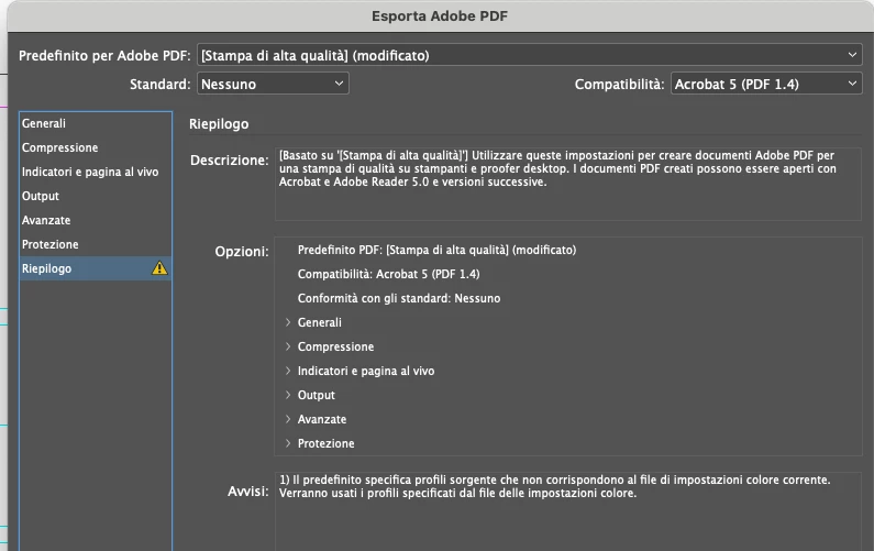 problema esportazione PDF causa profilo colori