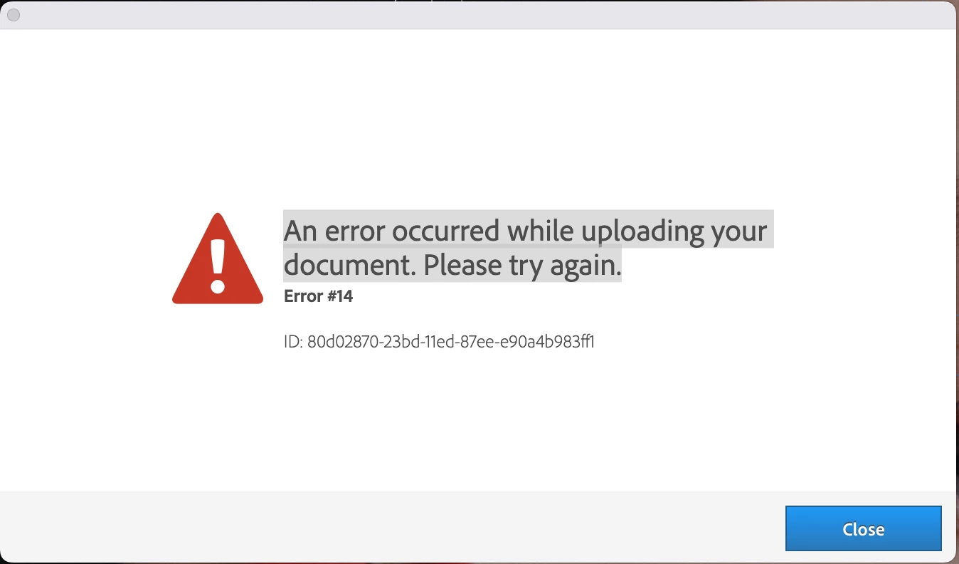 Problemas con Publish Online en InDesign, error 14.
