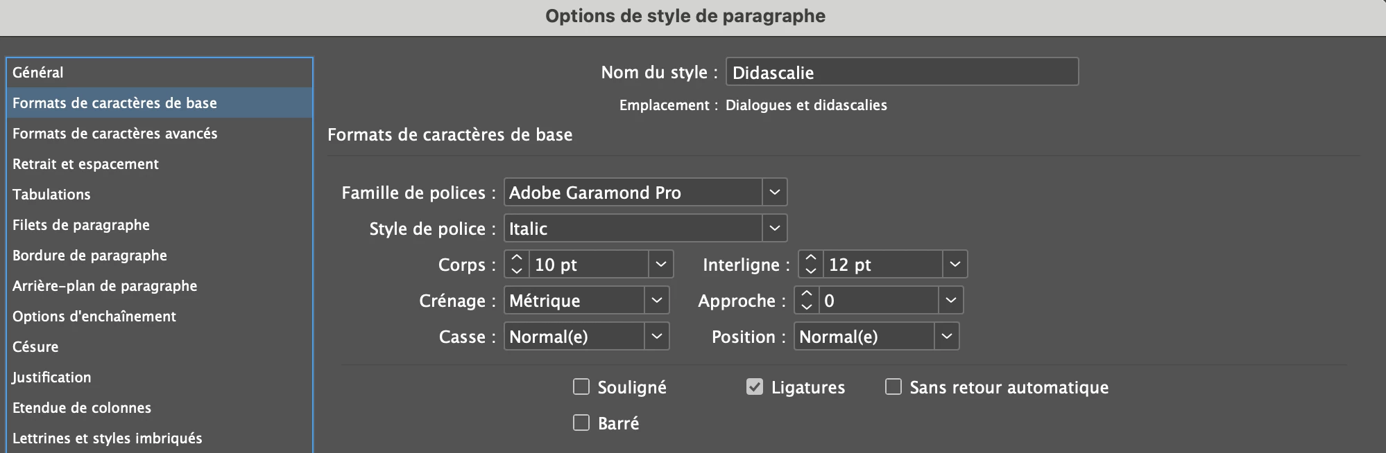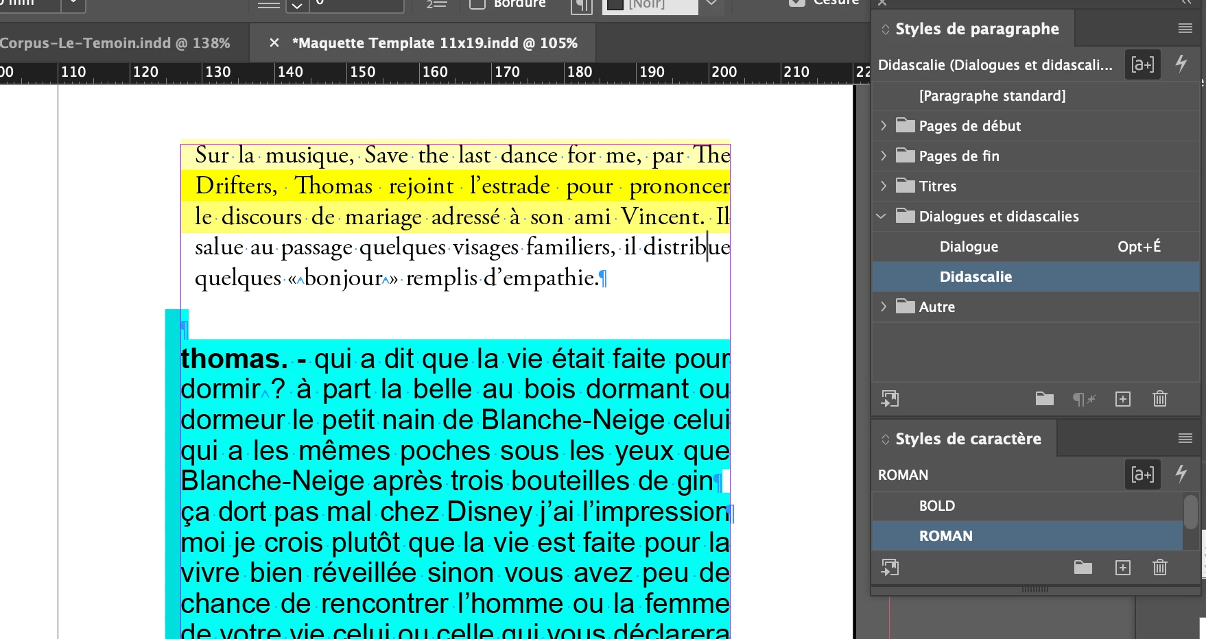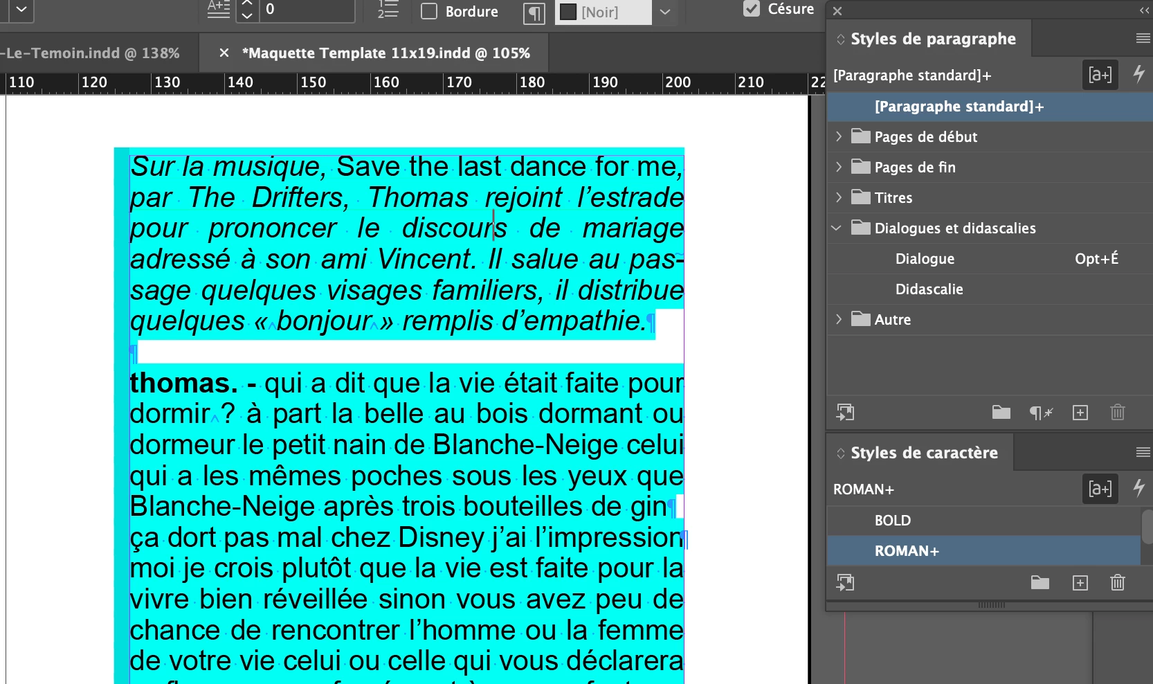Je connais dernièrement des problèmes au moment d'appliquer des styles de paragraphes à un texte importé : seulement une partie des paramètres du syle choisi s'applique (par ex: un retrait de paragraphe) et pas l'autre (par ex : l'italique ne s'applique pas). Le logiciel semble néanmoins considérer que le style est appliqué, car aucun surlignage n'apparaît. Je ne peux pas non plus "forcer" l'application du style avec Opt+É.