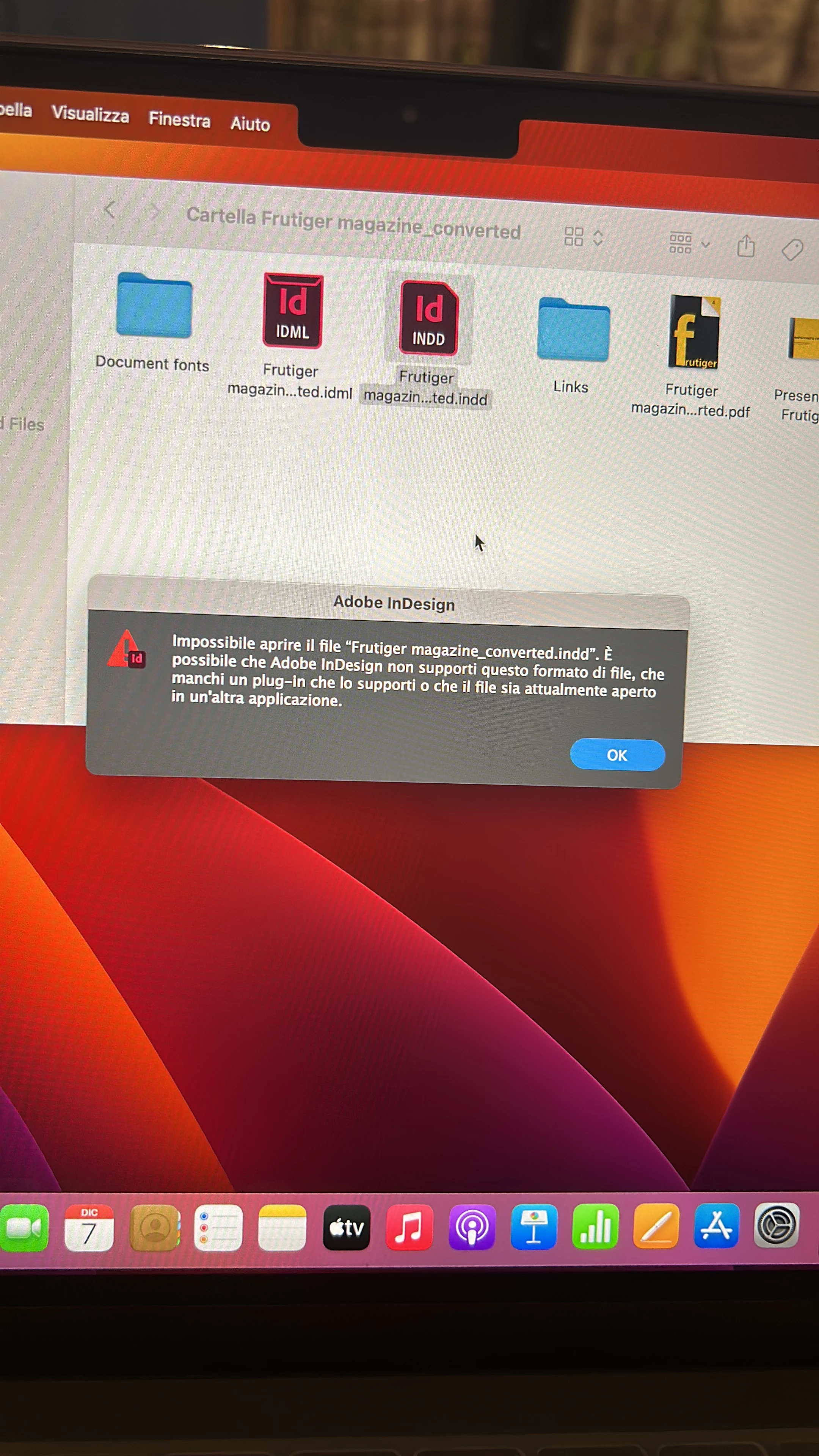 Problemi con l'apertura del file di Indesign