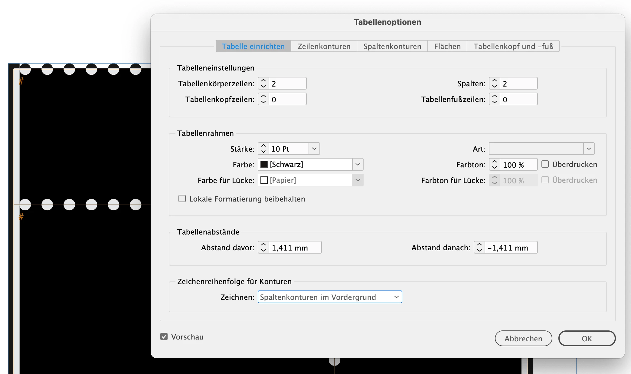 2. How can I align the dotted stroke to the inside in such a way that when I enter the exact size, the table will fit within the margin?