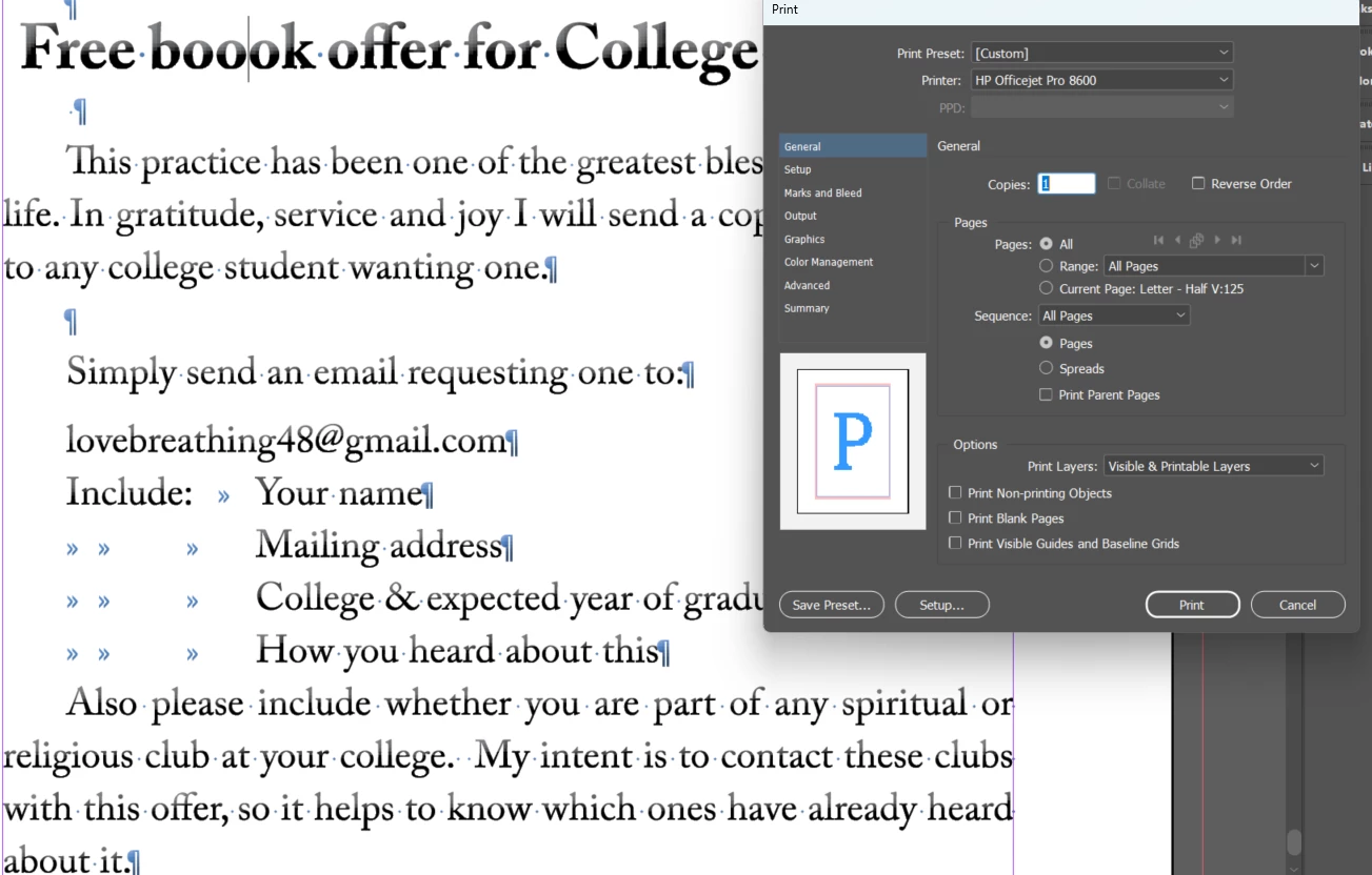 I used version CS5.5 InDesign to create this book, but when these problems prevented printing, I just today signed up for the online Creative Suite to see if that would fix it. It did not.