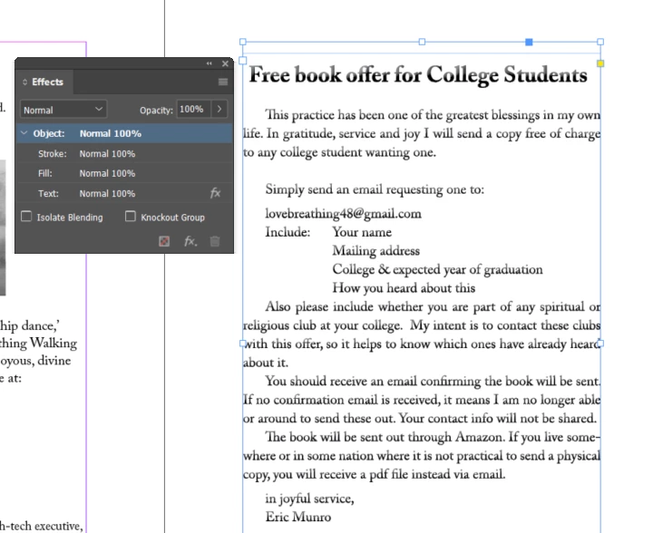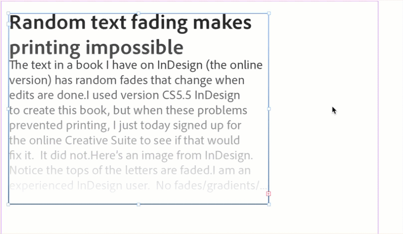 The text in a book I have on InDesign (the online version) has random fades that change when edits are done.