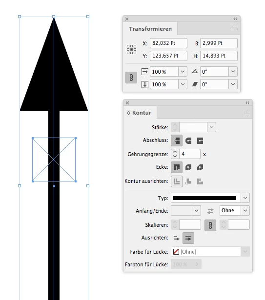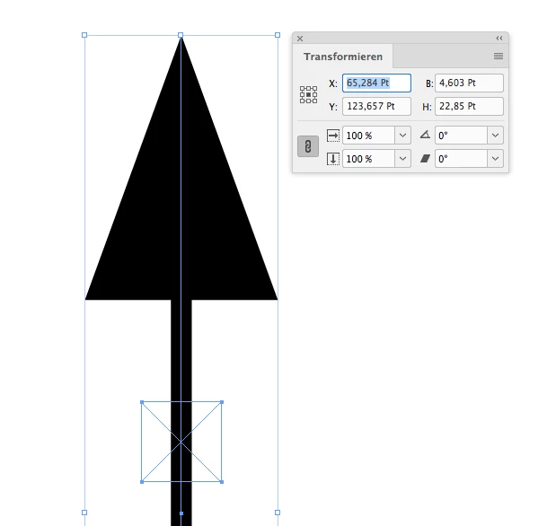 So it's width is 2.999 Pt and the stroke weight is still 0.5 pt. Not exactly 3 Pt, but that's the best we can get when working in the UI only. By scripting we could set the percentage for the arrow head to exactly 3 Pt, because values like 65.17488594395 % for arrow heads are allowed.