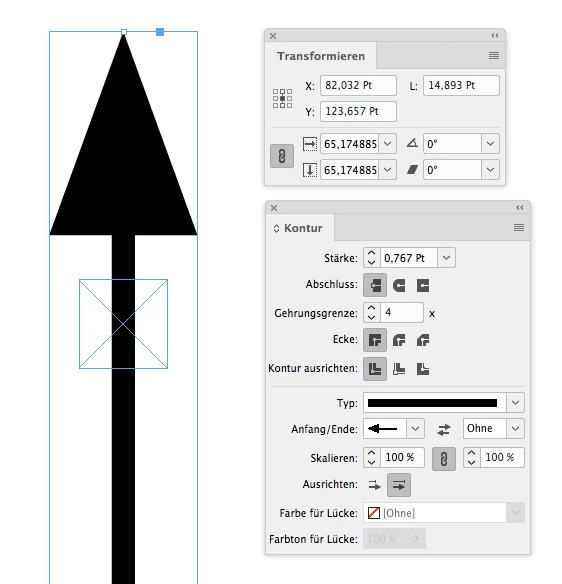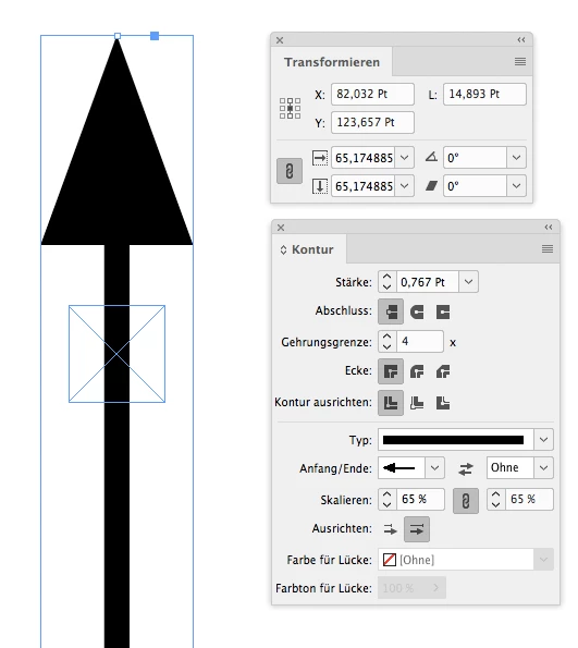 The value for the stroke's weight says 0.767 pt, but the effective value—because the frame is scaled—is 0.5 pt!