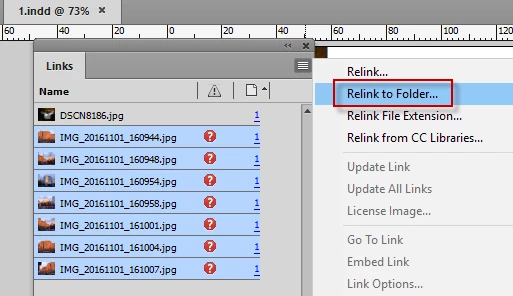 Thank you so much Kasyan. I make over 100 documents per day and about 100 photos in each document need to be relinked to only 1 folder. Yes the feature "Relink to folder" is the way I am doing. But in each document, some photos are already relinked and some are not. I just want to speed up workflow by only "pressing a button" and the scipt will: choose missing links in the document I am working on, and relink them to the folder I want (and i want to pass through the dialog box "choosing folder" because I have only 1 folder)