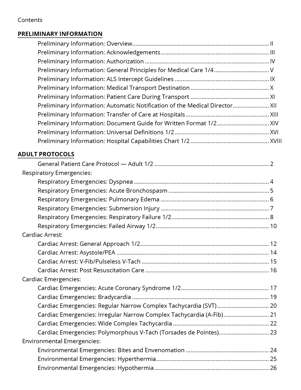 In the Adult Protocols section, I'd like Respiratory Emergencies: to not show, Cardia Arrest: to now show, etc...