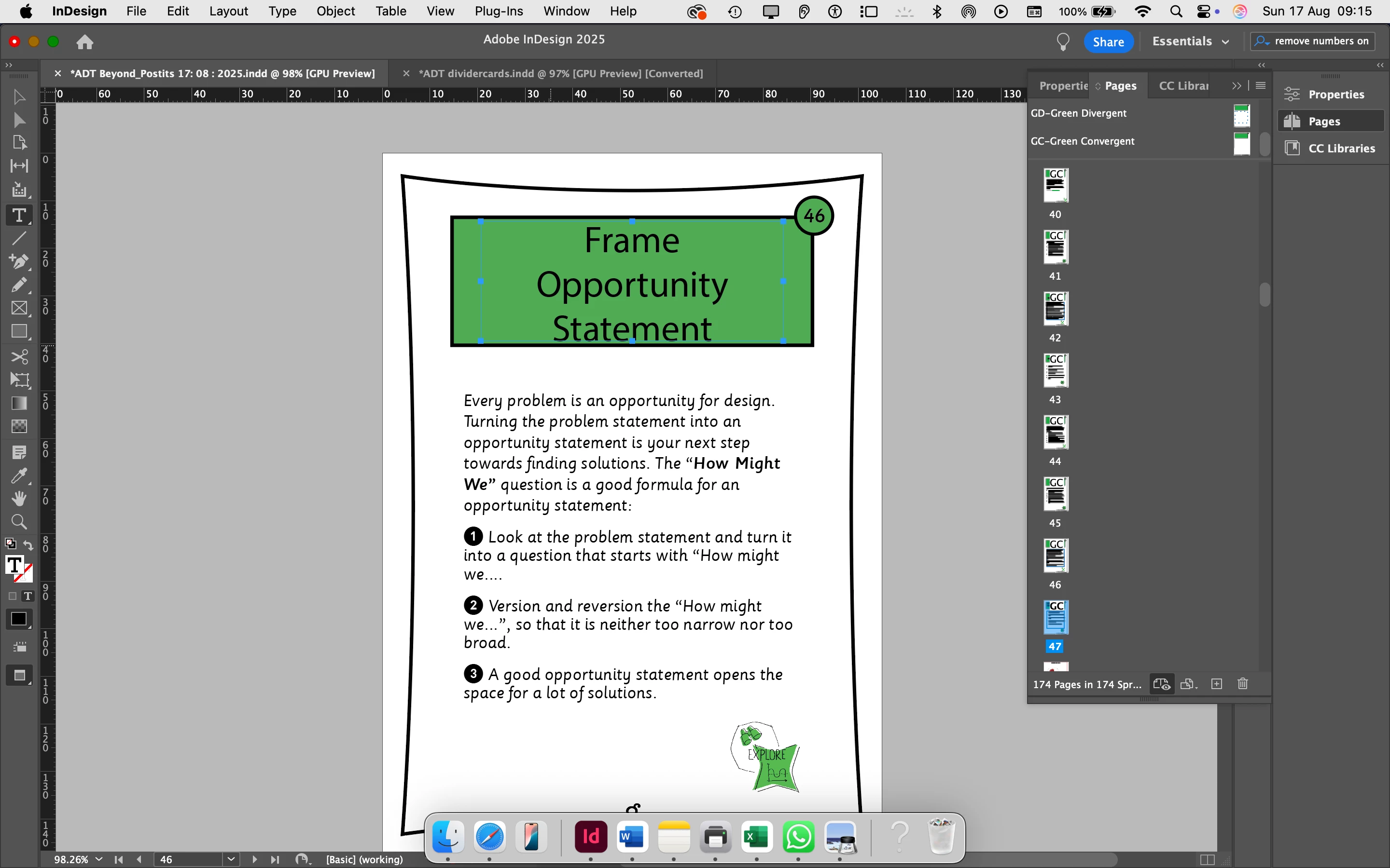 I am updating an indesign file. I can not get rid of the page number which must be part of style. It appears on top of the green section. How can I change numbering from automatic to manual? Many thanks.