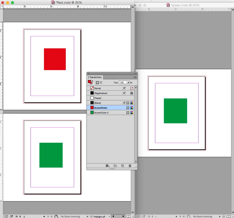However, I'm running into color naming conflicts when combining documents to assemble the full magazine in ID. "Article primary accent" from later articles is getting reset to the color definition of the color used in the initial (first article) starting document. I am not getting a color name conflict warning dialog box like I get if copy/pasting and object from one layout to another. It seems like dragging pages from one document's Pages pallet into a second document (the right way to combine/add pages, right?) does not recognize that there are 2 colors with the same name.