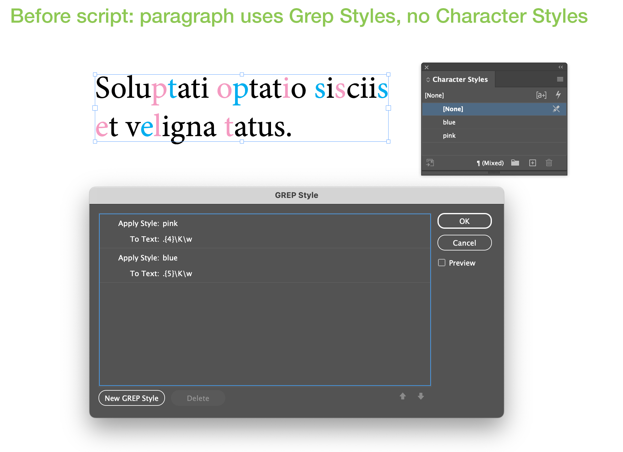 Response of FontStyle in TextStyleRange when Grep Style is active