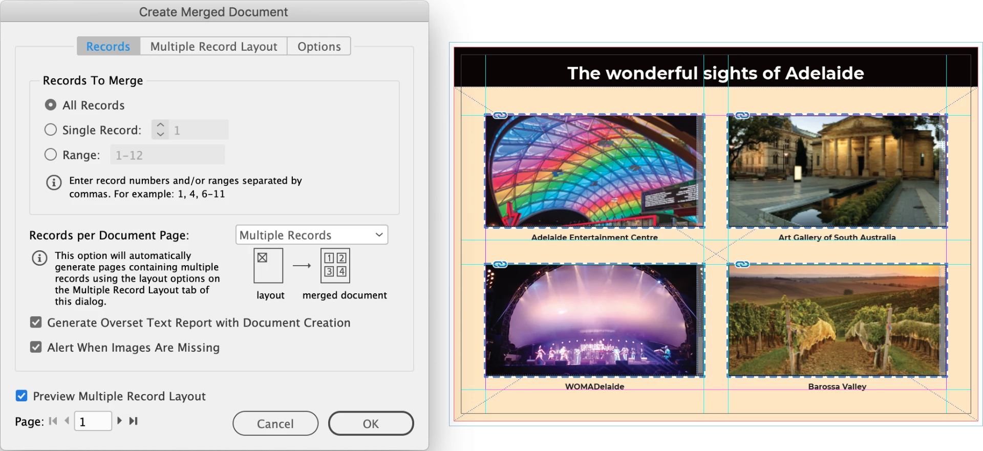 Wenn ich die Optionen zum Zusammenführen von Daten öffne und die Vorschau für mehrere Datensätze aktiviere, sieht das Ergebnis so aus, wie ich es erwartet habe.