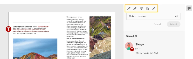 As a reviewer, you will be able to highlight text, strikethrough text and replace text corresponding to your comment.