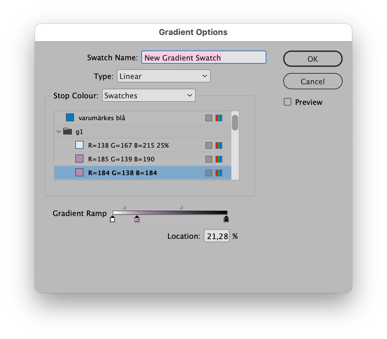 The process to make a color gradient is so ridiculous in inDesign that it is not even funny. I don't think I am stupid, but nothing seems to be intuitive and it does not work.