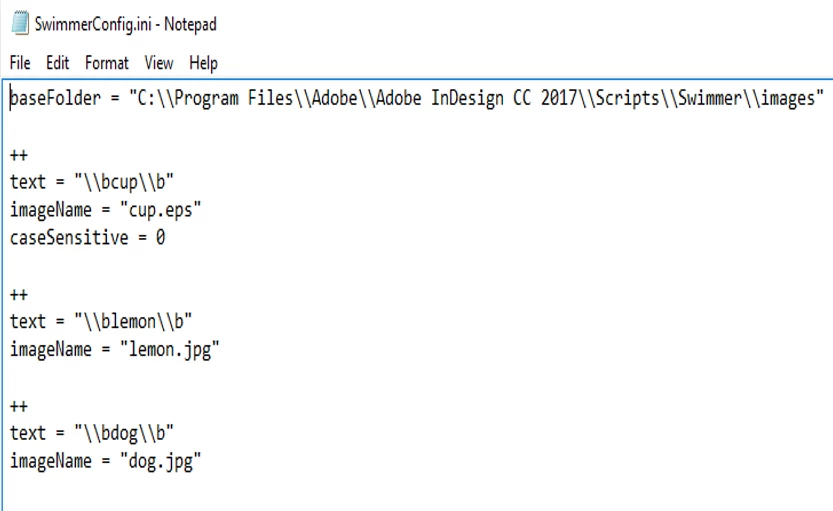 1. Open "sample.idml" present in the ORIGINAL swimmer folder. This file contains the text that will be replaced by the images.