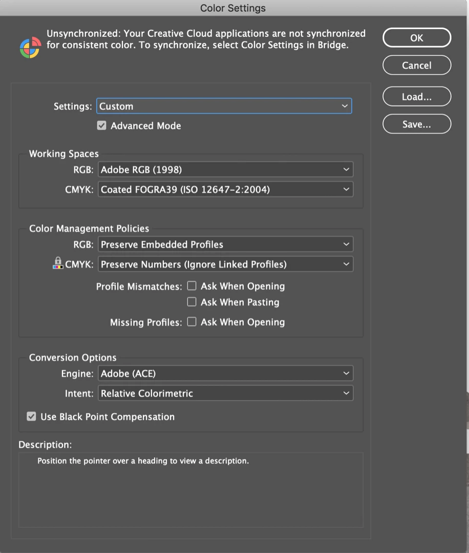 And here are my color settings: