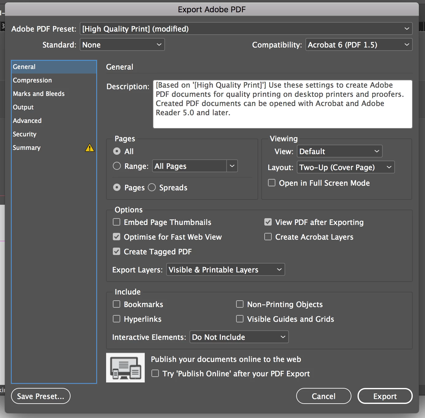 However when the file opens in Acrobat it is only one page on its own, nothing beside it. Please tell me I'm missing something very simple.... I can't believe it would be so difficult to export a file this way. I have searched the internet high and low for an answer. Thanks in advance.