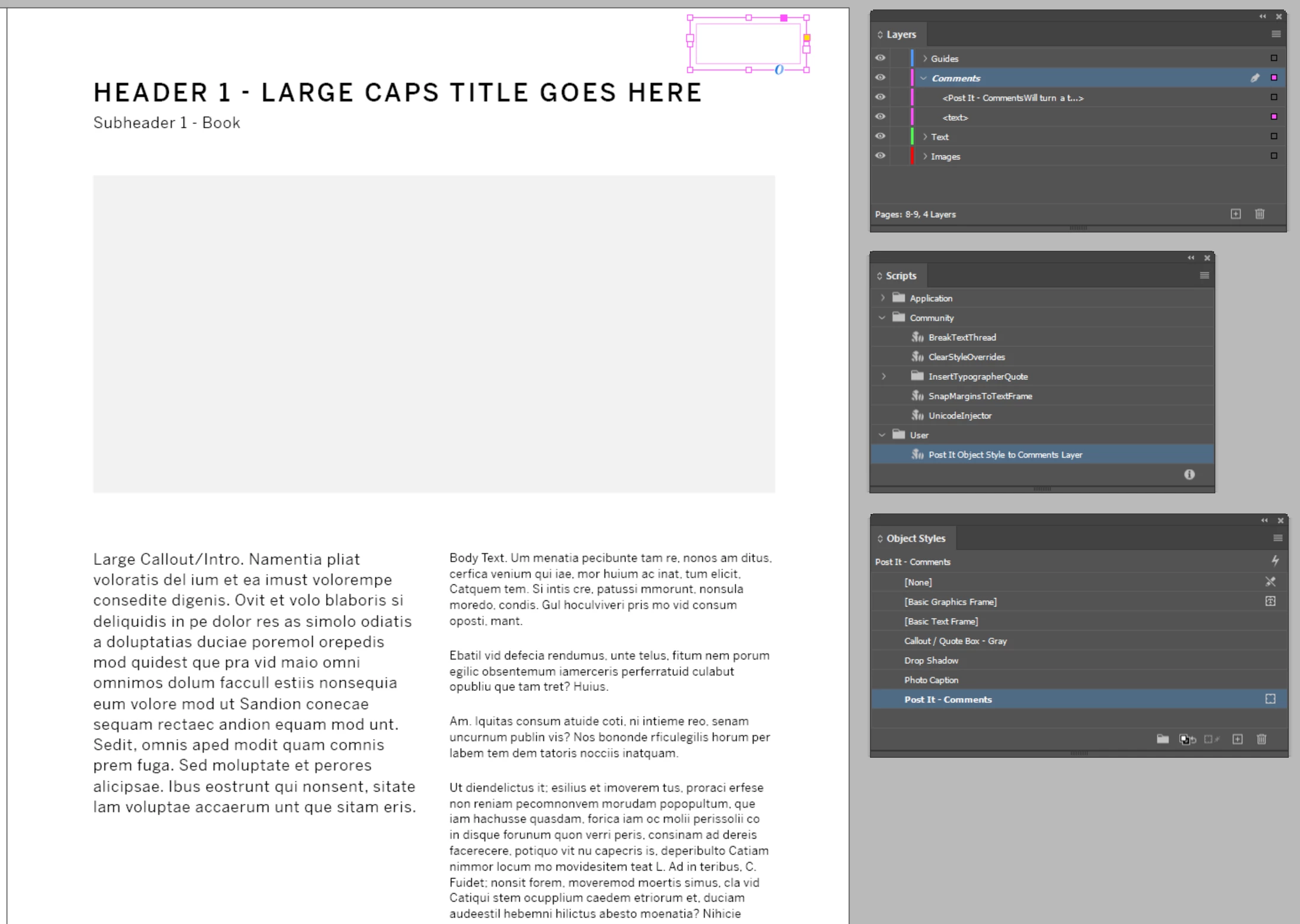 Example: I have an object style called "Post It - Comments" which is a bright pink text box we use to write comments that stand out, but we don't want them to end up getting accidentally exported. I want to make sure all of these comment boxes can be easily toggled off, so I want them to move to a layer called "Comments" that I can default to not print in exports. Right now, it takes a long time (full of user error) to manually add these comments to the right layer because InDesign defaults to the last used layer, which is typically the Text layer.