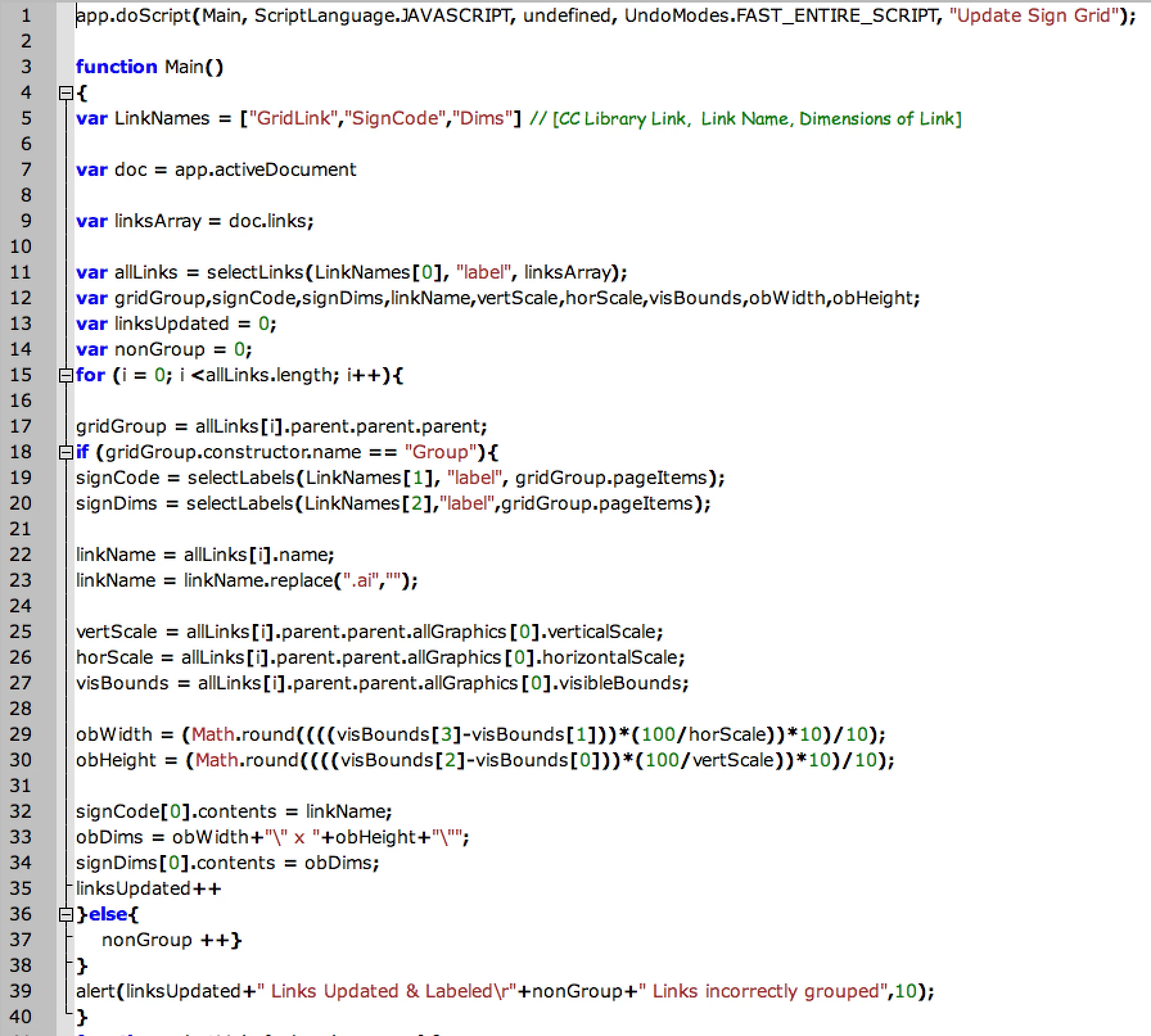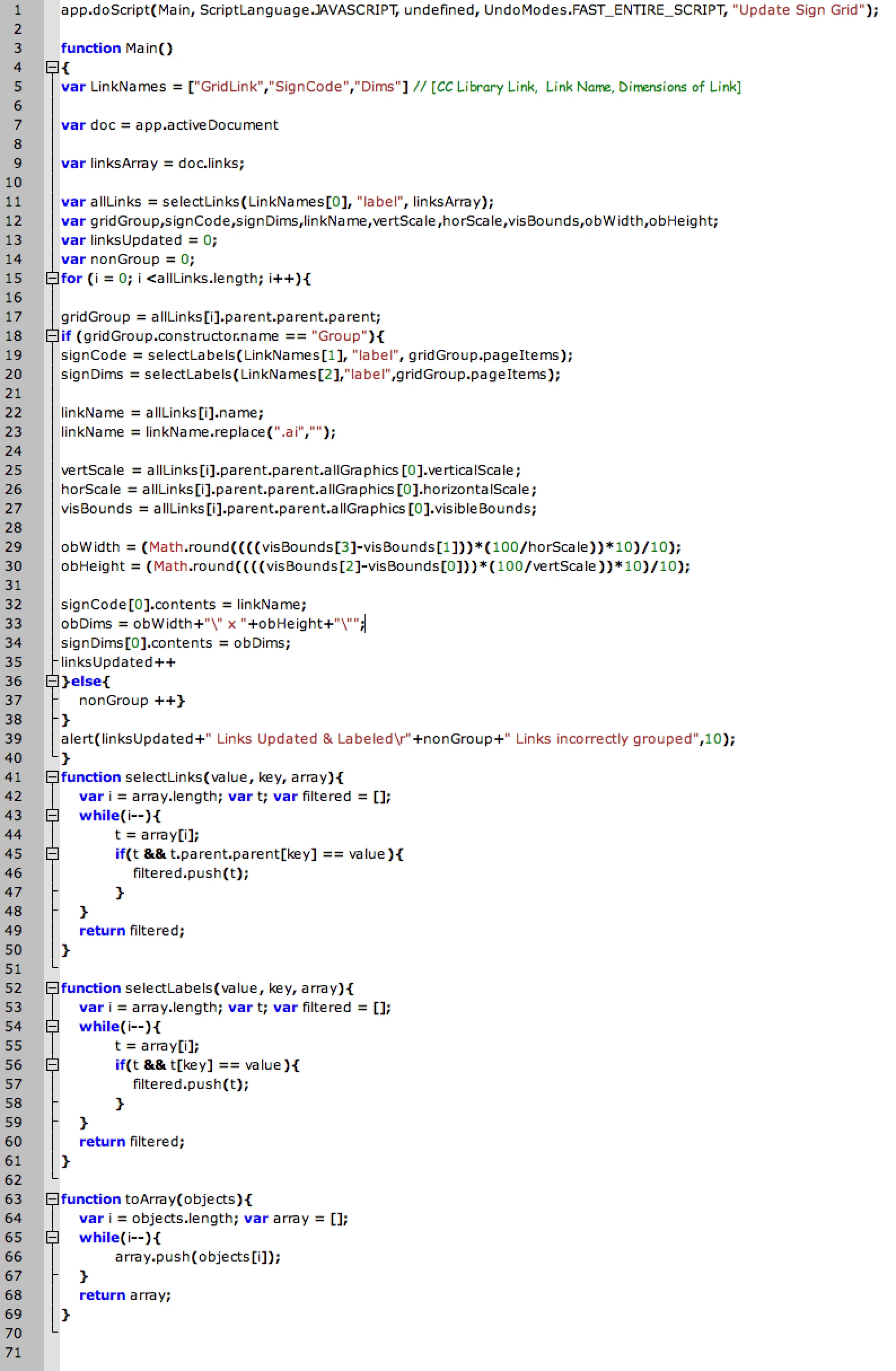 app.doScript(Main, ScriptLanguage.JAVASCRIPT, undefined, UndoModes.FAST_ENTIRE_SCRIPT, "Update Sign Grid");