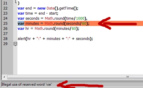 Error showing "Illegal use of reserved word 'var'