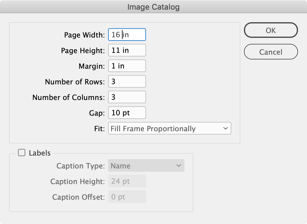 The goal is to take all those 600 images, copy them into a separate target document with the dimensions 700 × 1000 mm, and have them placed/distributed in the target document as few pages as possible by reducing white space between the images (but without overlapping or changing their size from the source documents). Ideally each image should have a caption that includes its file name and the page number it appears on in the source document.