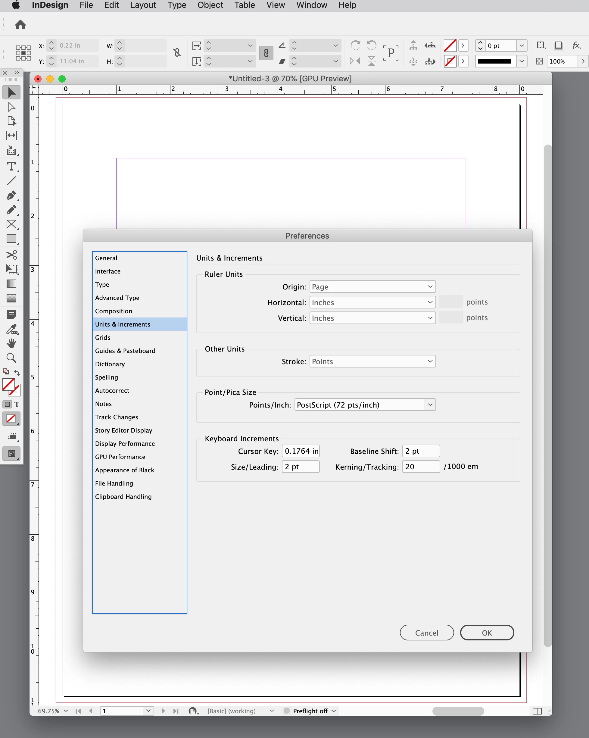 set vertical measurement units to inches