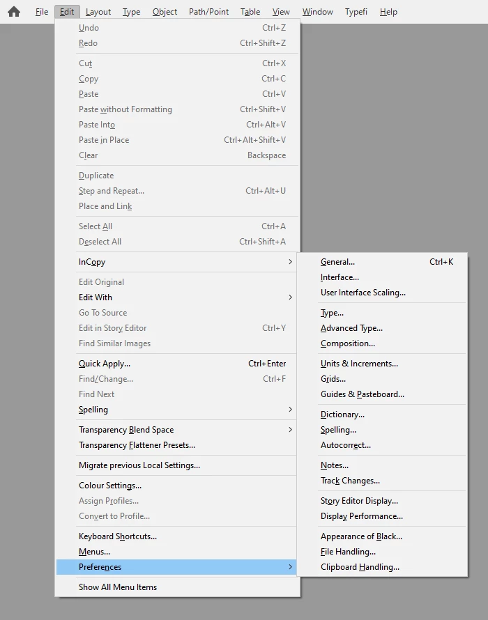 I was just wondering if, all the rest like 'Interface' etc could also be part of the fly out, so seeing all the options in the submenu, not only General, like under the InDesign menu on the Mac. Not that it is that important, but just to see the same on Mac as under Windows, for clarity of users.