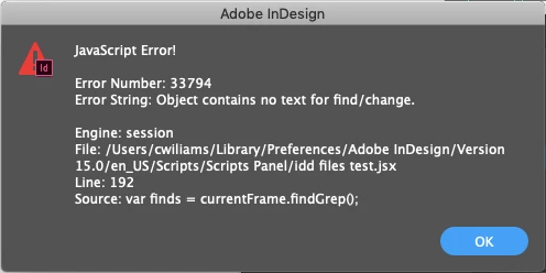 I got the following script code from a previous InDesign thread about 1.5 years ago but it's not working in the current version of InDesign. Can someone help me with what to edit in the script for it to work? Right now the only error I get is this: