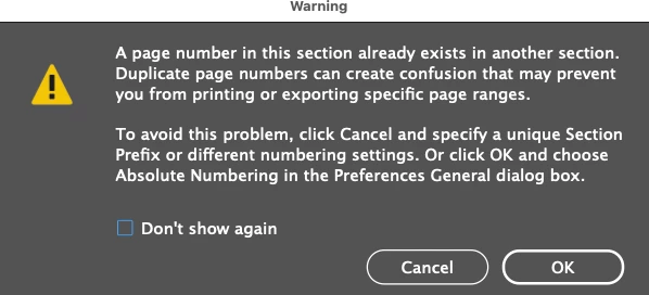 I haven't run into this before, but I've started a section (to restart page numbering) and... it has no effect.