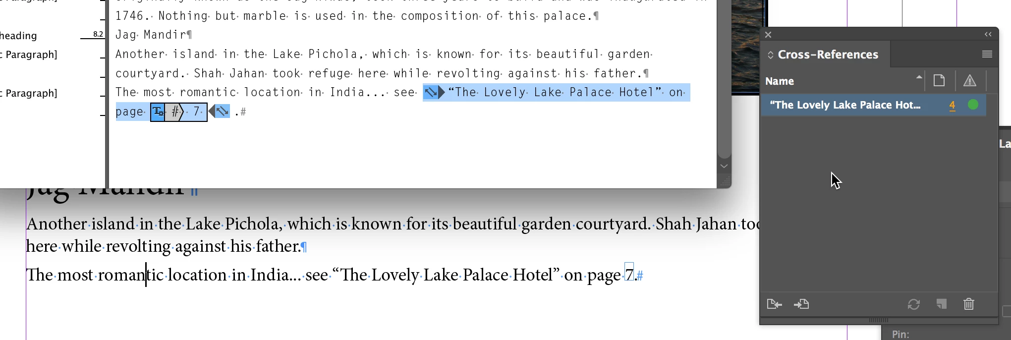 Seeing a cross-reference on the screen