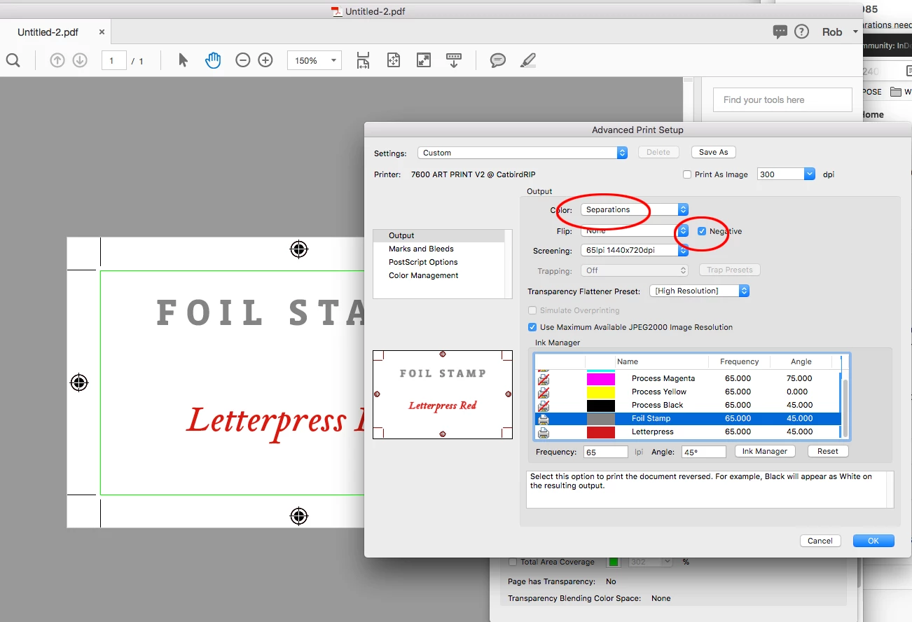 So this has been a hot topic and Im looking for a solution. I work for a printer, yes we use separations daily as we use the old litho one colour machines, for this I can print with the rip software, not a problem, my issue is I need to send for foil blocks and dies for engraving which they need as a single colour pdf, also all the artwork needs 5mm border on the pdf from the edge of each seperate artwork, so for example pdf business card supplied, 3 different spot colours for dies needed, also embossed section which I need separation for, also needs to be imported Into InDesign for inposition 4 up before everything is sent for, any one got the easiest way to do this?