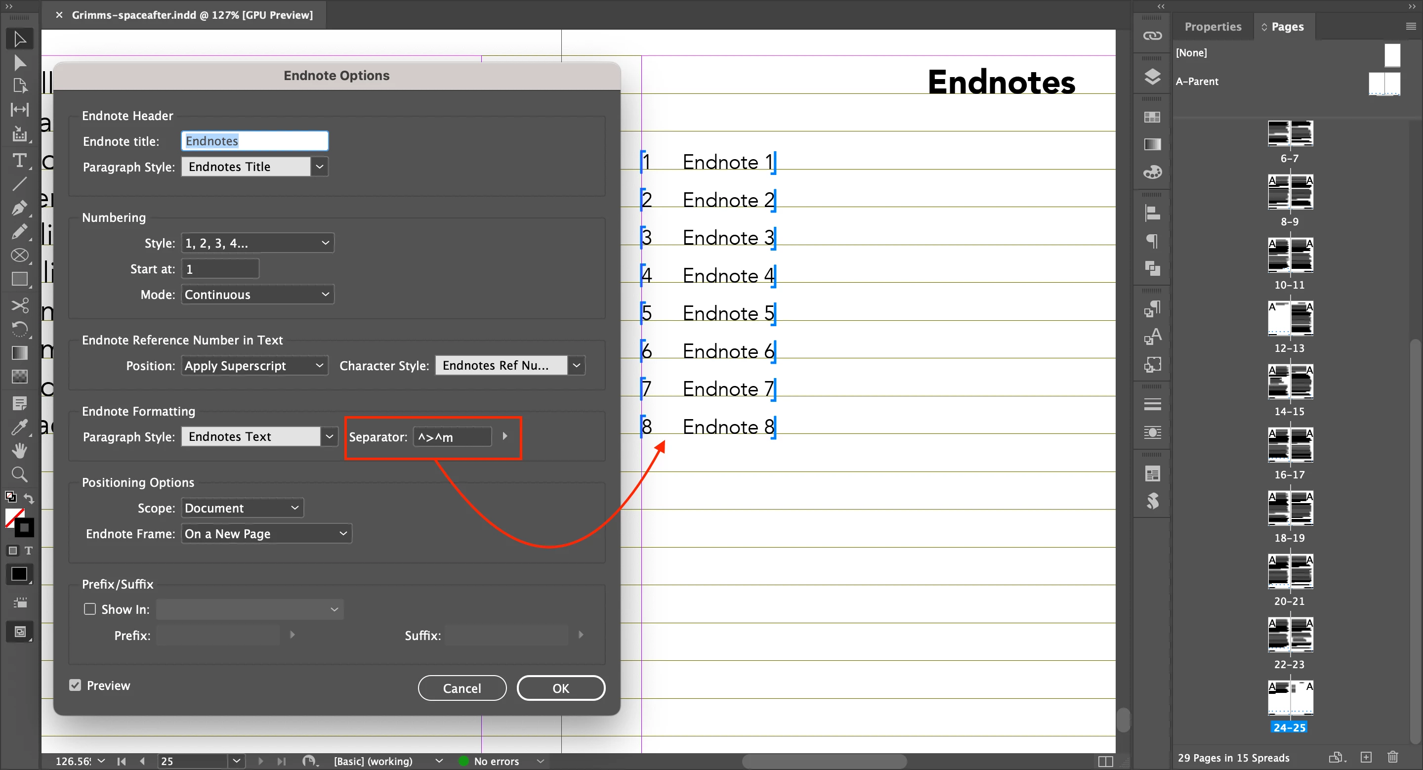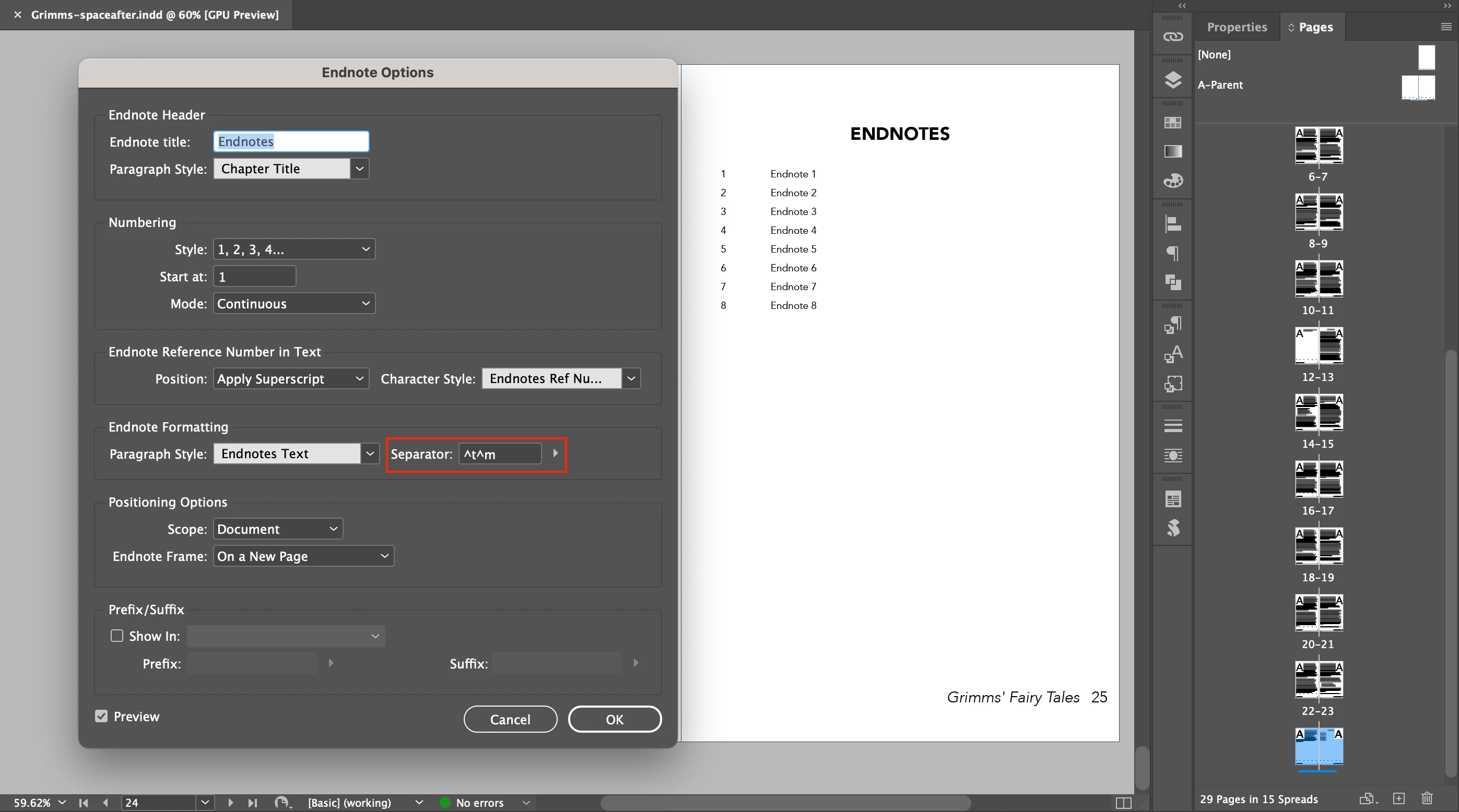 Use a different separator, such as space-emdash-space. Never use tabs in EPUB. And (more generally) it's poor practice in ID to use multiple white space characters in a row, such as tab-space. One whitespace to a space; use whichever works correctly.