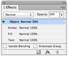 one more thing: I am trying to set the object opacity of a text frame via JavaScript (to 39%).